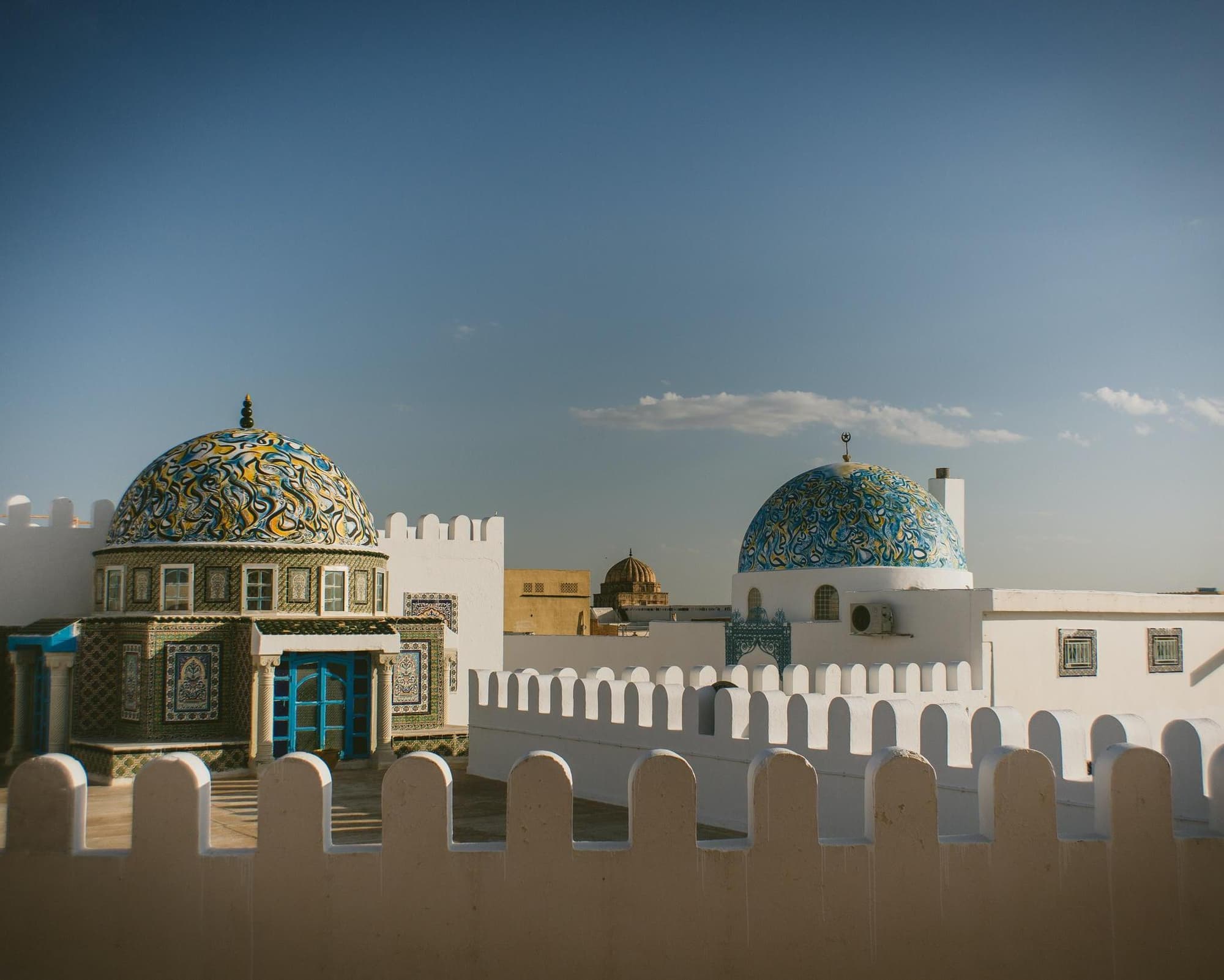 Il nostro ultimo giorno ci porta a Tunisi, dove visiteremo la Medina, passeggiando tra i suoi souq e ammirando la vista dalla Kasbah. La visita proseguirà con una tappa alla Grande Moschea Zitouna (visita esterna) e alla Porta del Mare, uno dei luoghi più suggestivi della città. Ci immergeremo nella storia personale di Claudia Cardinale, con un percorso che ci porterà nella “Piccola Sicilia” di La Goulette, dove visse la famosa attrice. Nel pomeriggio, visiteremo le rovine di Cartagine (Patrimonio dell’Umanità dell’UNESCO), esplorando le aree puniche e romane, per concludere la nostra esperienza a Sidi Bou Said, un incantevole villaggio in stile andaluso, simbolo dell’arte e della cultura mediterranea.